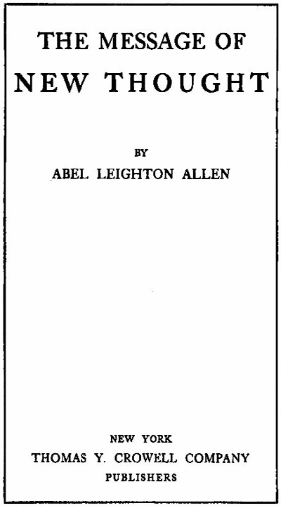 Links to Additional Media for The Message of New Thought by Abel Allen such as audio and ebooks are located at the bottom of this web page.