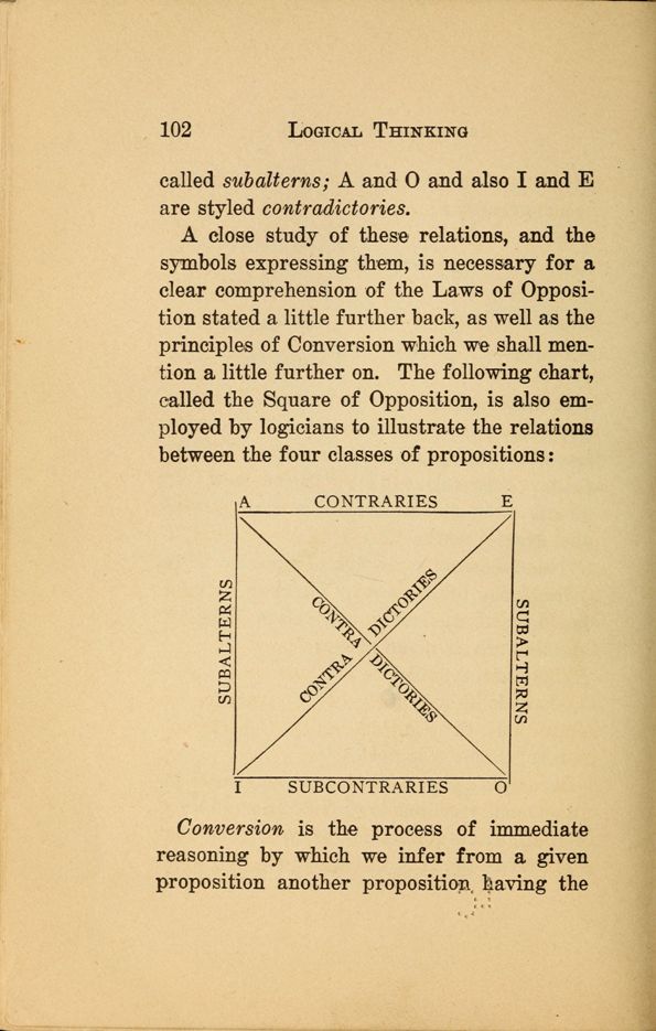 1 - Reasoning - 2 - Process of Reasoning - 3 - The Concept - 4 - The Use of Concepts - 5 - Concepts and Images - 6 - Terms - 7 - Meaning of Terms - 8 - Judgments - 9 - Propositions - 10 - Immediate Reasoning - 11 - Inductive Reasoning - 12 - Reasoning by Induction - 13 - Theory and Hypotheses - 14 - Making and Testing Hypotheses - 15 - Deductive Reasoning - 16 - The Syllogism - 17 - Varieties of Syllogisms - 18 - Reasoning by Analogy - 19 - Fallacies -