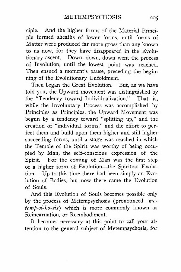 It becomes necessary at this point to call your attention to the general subject of Metempsychosis, for