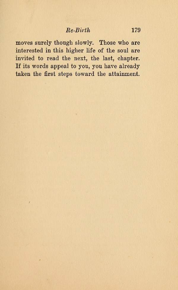 moves surely though slowly. Those who are interested in this higher life of the soul are invited to read the next, the last, chapter. If its words appeal to you, you have already taken the first steps toward the attainment.