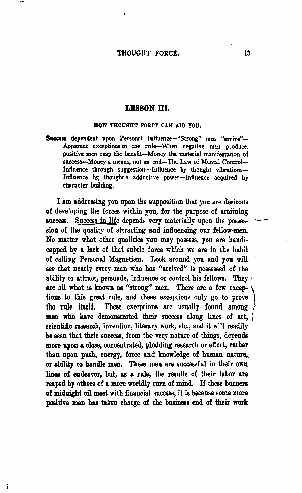 Lesson 3 - How the Thought Force Can Aid You - p. 13