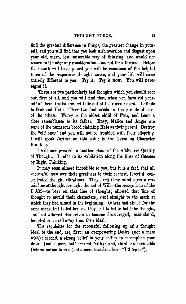 I will now process to another phase of the Adductive Quality of Thought. I refer to its exhibition along the lines of Success by right Thinking.