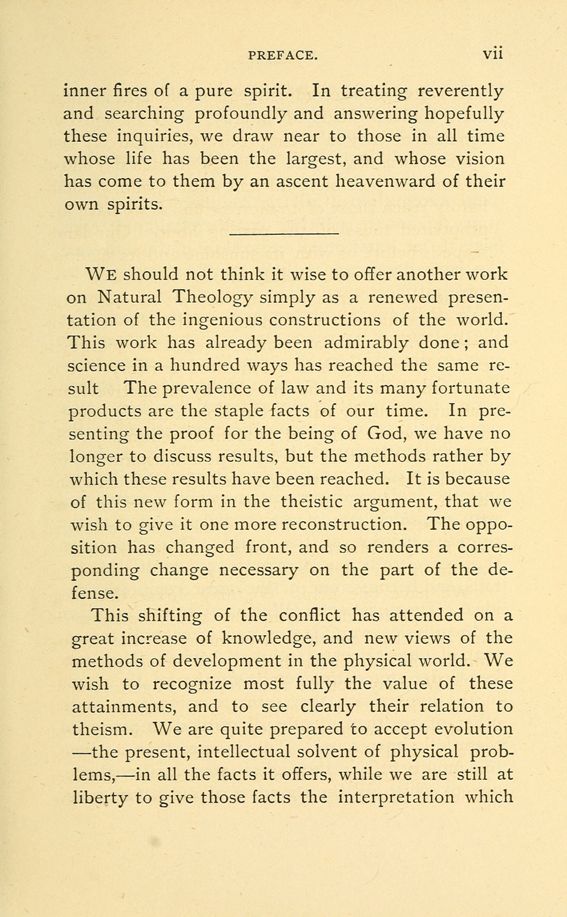 WE should not think it wise to offer another work on Natural Theology simply as a renewed presentation of the ingenious constructions of the world.