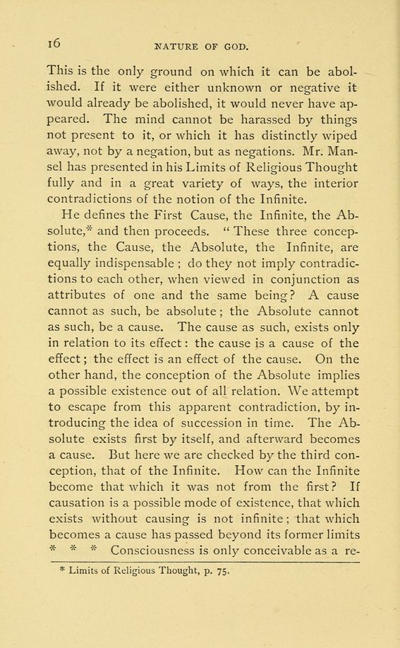 * Limits of Religious Thought, p. 75.