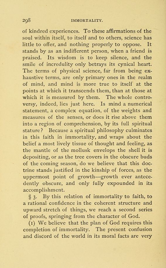 §3. By this relation of immortality to faith, to a rational confidence in the coherent structure and upward stretch of things, we reach a second series of proofs, springing from the character of God.