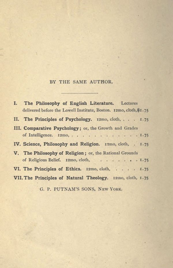 AUTHOR OF "AESTHETICS," "PHILOSOPHY OF ENGLISH LITERATURE," "PHILOSOPHY OF RELIGION", "ETHICS"