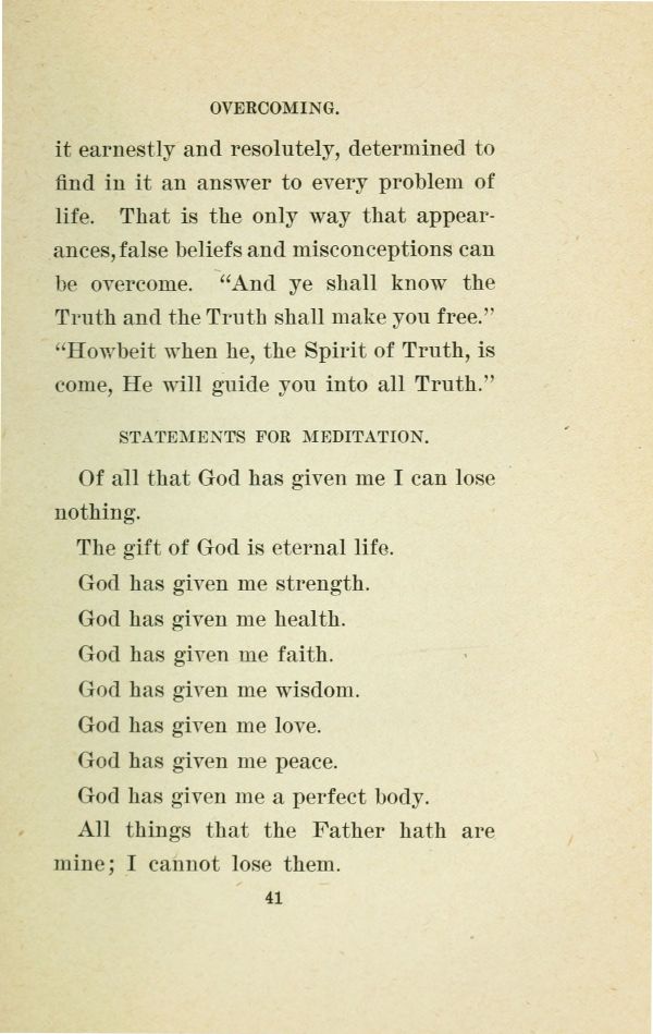 it earnestly and resolutely, determined to find in it an answer to every problem of life. That is the only way that appearances, false beliefs and misconceptions can be overcome. "And ye shall know the Truth and the Truth shall make you free." "Howbeit when he, the Spirit of Truth, is come, He will guide you into all Truth."