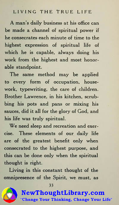 A man's daily business at his office can be made a channel of spiritual power if he consecrates each minute of time to the highest expression of spiritual life of which he is capable, always doing his work from the highest and most honorable standpoint.