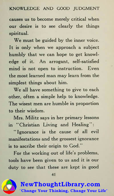 Mrs. Militz says in her primary lessons in "Christian Living and Healing":