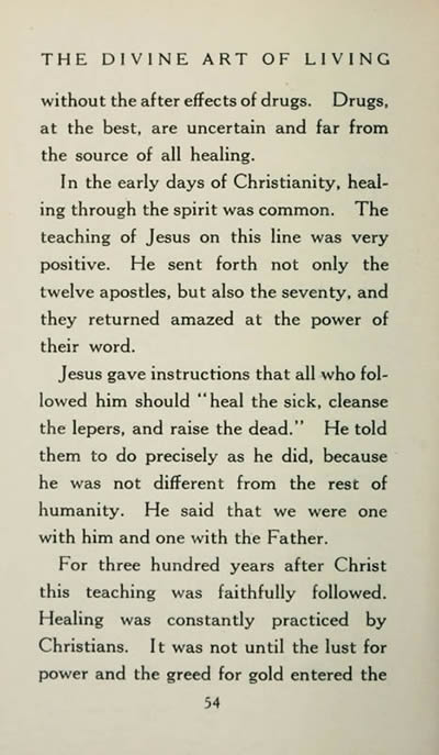 In the early days of Christianity. healing through the spirit was common. The teaching of Jesus on this line was very positive. He sent forth not only the twelve apostles. but also the seventy. and they returned amazed at the power of their word.