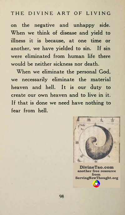 When we eliminate the personal God, we necessarily eliminate the material heaven and hell. It is our duty to create our own heaven and to live in it. If that is done we need have nothing to fear from hell.