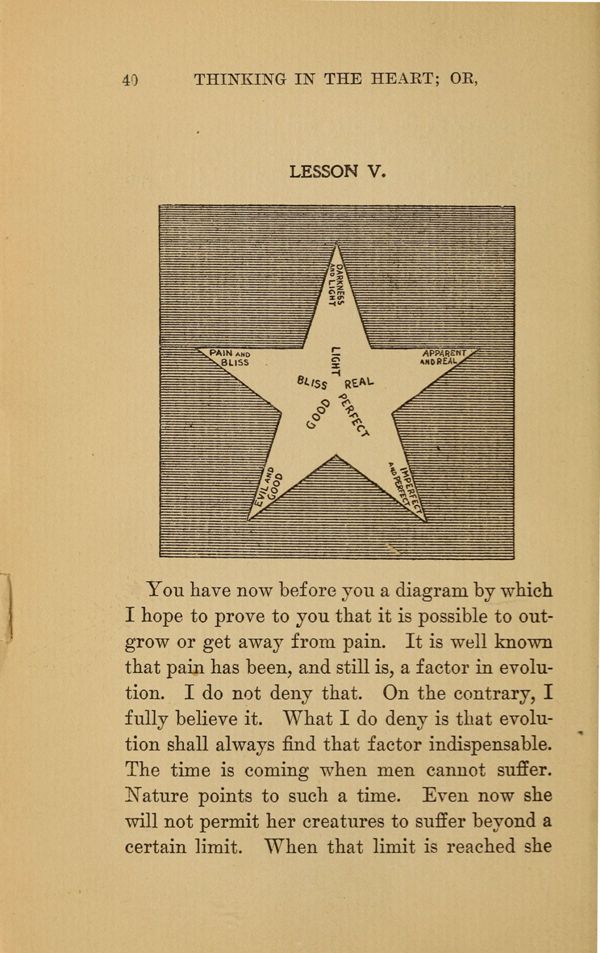 You have now before you a diagram by which I hope to prove to you that it is possible to outgrow or get away from pain. It is well known that pain has been, and still is, a factor in evolution.