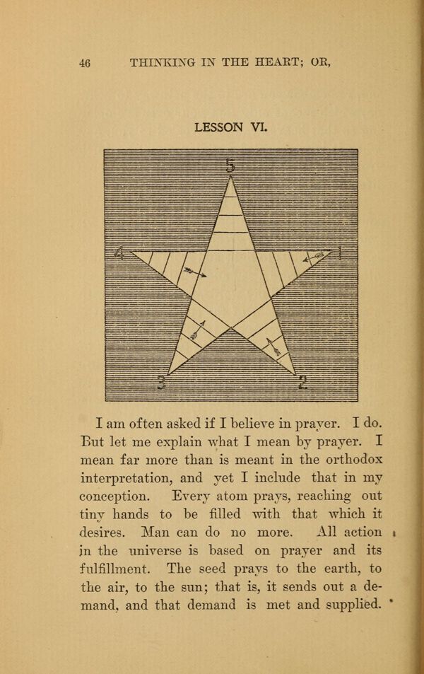 But let me explain what I mean by prayer. I mean far more than is meant in the orthodox interpretation, and yet I include that in my conception. Every atom prays, reaching out tiny hands to be filled with that which it desires. Man can do no more, All action in the universe is based on prayer and its fulfillment. The seed prays to the earth, to the air, to the sun; that is, it sends out a demand, and that demand is met and supplied.