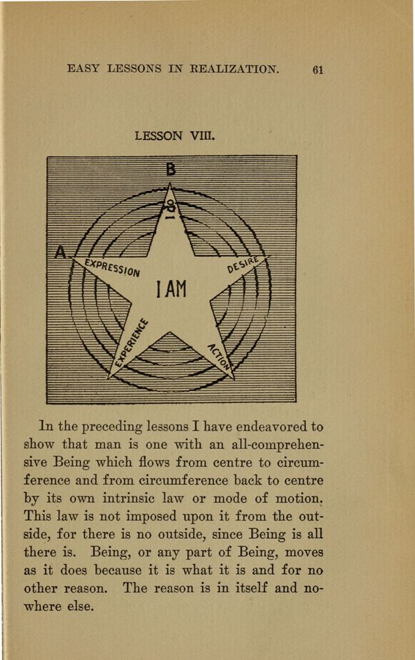 In the preceding lessons I have endeavored to show that man is one with an all-comprehensive Being which flows from centre to circumference and from circumference back to centre by its own intrinsic law or mode of motion.
