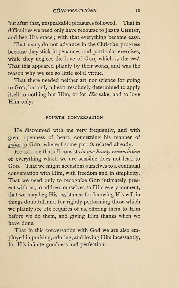 That there needed neither art nor science for going to GOD, but only a heart resolutely determined to apply itself to nothing but Him, or for His sake, and to love Him only.