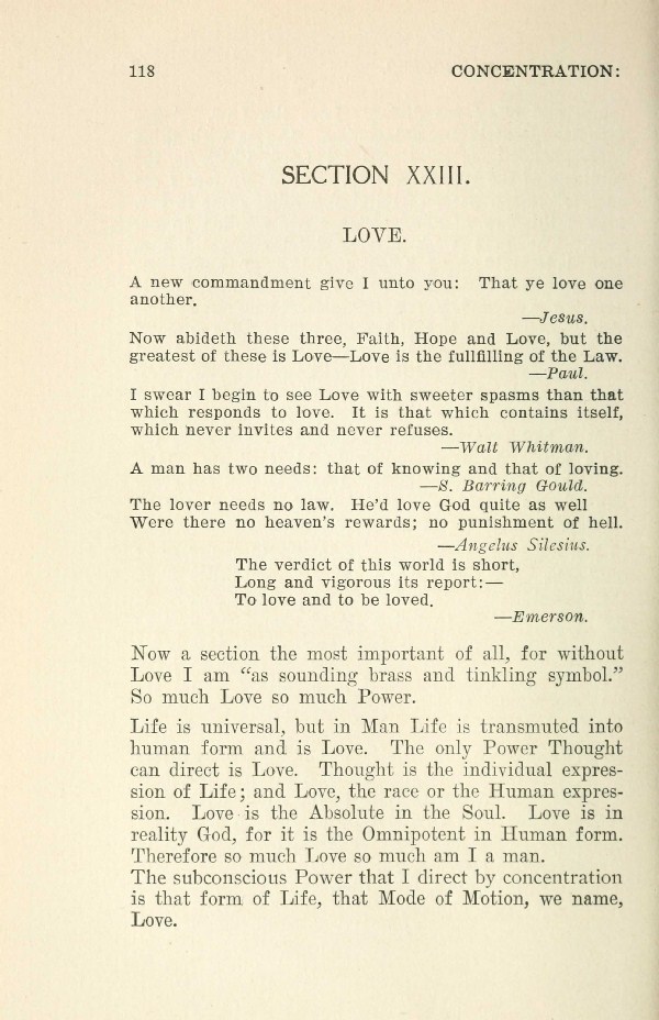 The subconscious Power that I direct by concentration is that form, of Life, that Mode of Motion, we name, Love.