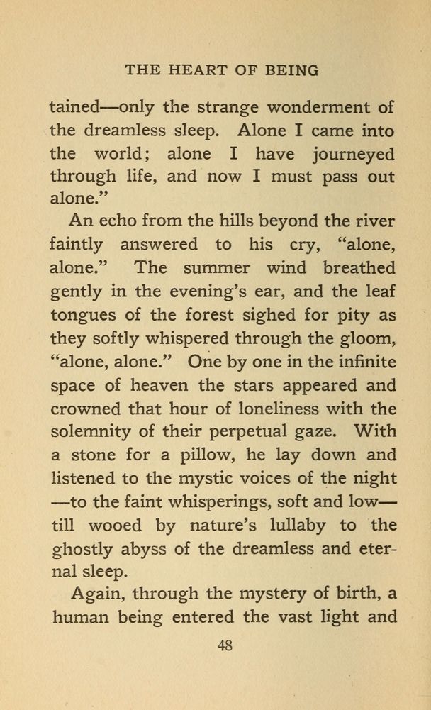 --- only the strange wonderment of the dreamless sleep. Alone I came into the world alone I have journeyed through life, and now I must pass out alone."