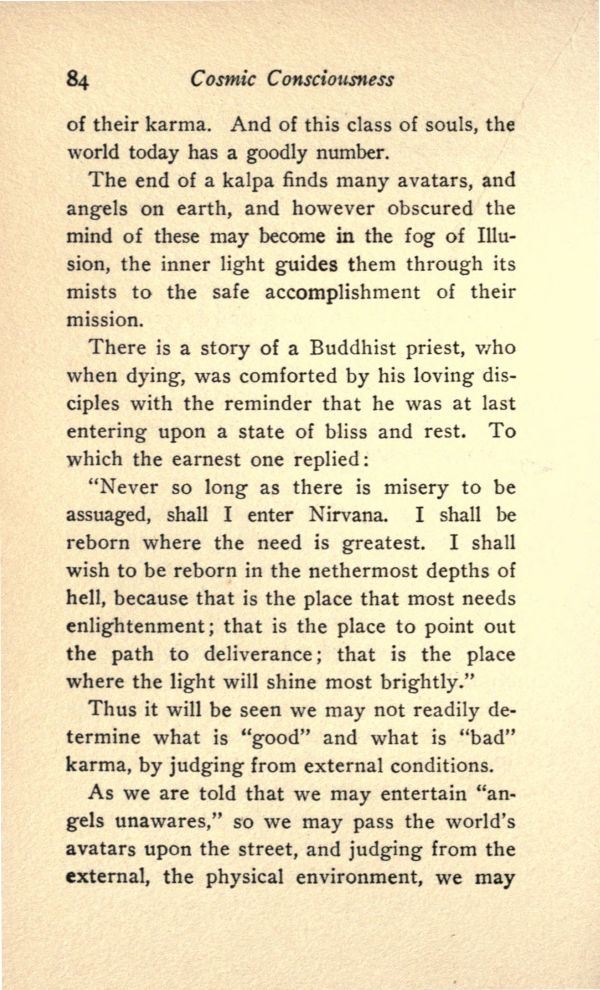 The end of a kalpa finds many avatars, and angels on earth, and however obscured the mind of these may become in the fog of Illusion, the inner light guides them through its mists to the safe accomplishment of their mission.