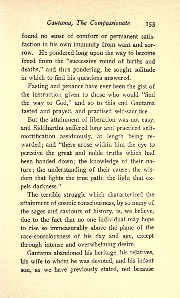 Gautama abandoned his heritage, his relatives, his wife to whom he was devoted, and his infant son, as we have previously stated, not because