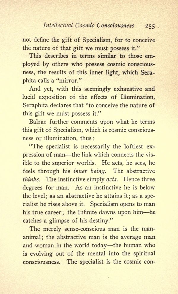 Balzac further comments upon what he terms this gift of Specialism, which is cosmic consciousness or illumination, thus: