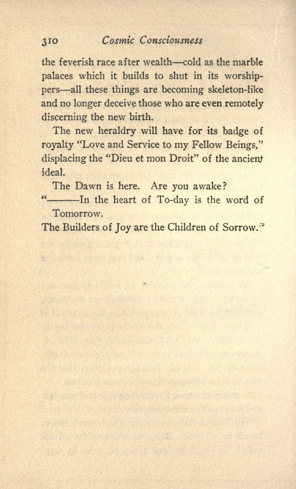 "--In the heart of To-day is the word of To-morrow. The Builders of Joy are the Children of Sorrow."