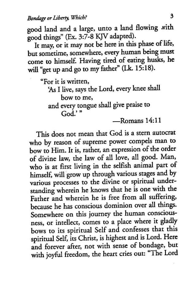 Bondage or Liberty, Which? - Statement of Being - Thinking - Denials - Affirmations - Faith - Definition of Terms: Chemicalization, Personality, and Individuality - Spiritual Understanding - The Secret Place of the Most High - Spiritual Gifts - Unity of the Spirit - Glossary of Truth Terms - Index - Contents -