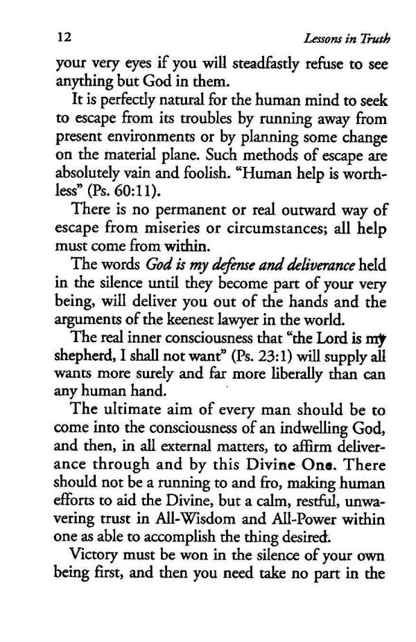 The words God is my defense and deliverance held in the silence until they become part of your very being, will deliver you out of the hands and the arguments of the keenest lawyer in the world.