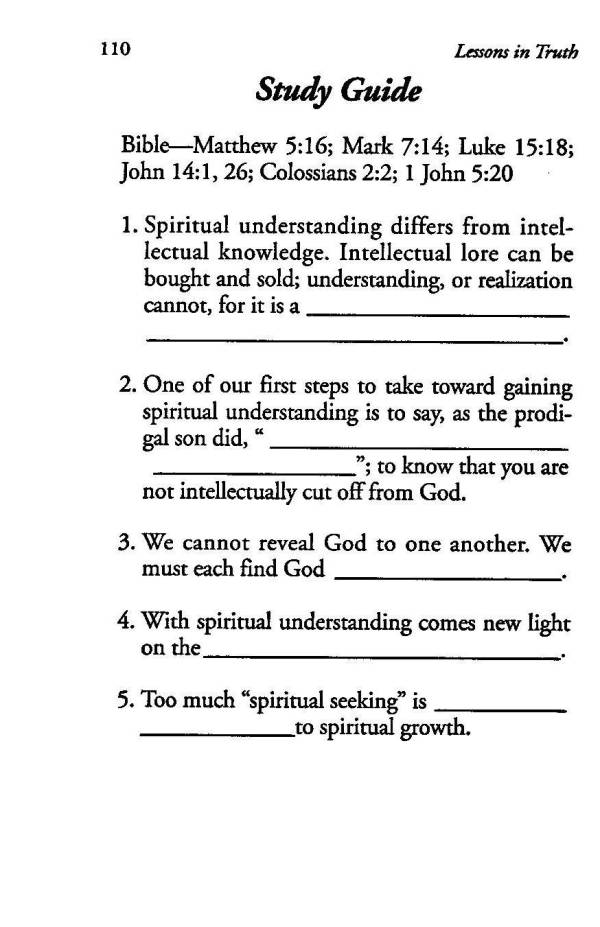 1. Spiritual understanding differs from intellectual knowledge. Intellectual lore can be bought and sold; understanding, or realization cannot, for it is a