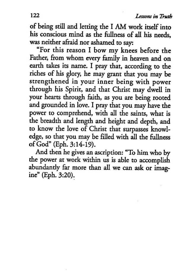 of being still and letting the I AM work itself into his conscious mind as the fullness of all his needs, was neither afraid nor ashamed to say:
