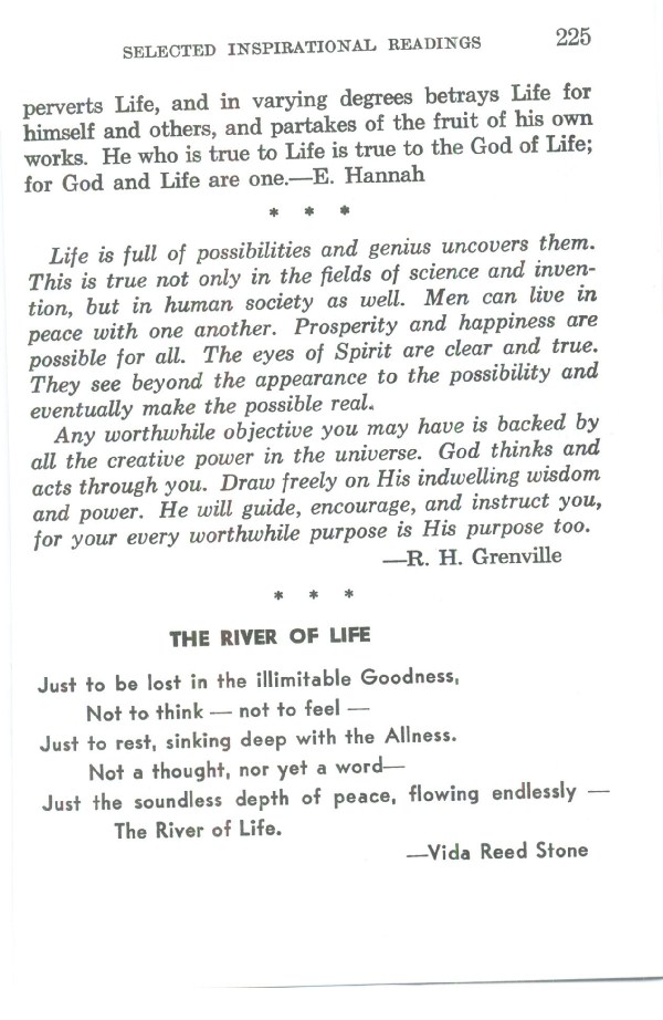Contents - Foreword - Early History of Divine Science - Revelation - Basis of Divine Science - God and Man are One - Thought - The Work of Thought - Prayer - Healing - Unfoldment - Divine Science Interprets Some Important Doctrines - Practical Application of the Principle - Conclusion - Selected Inspirational Readings - Glossary - Index