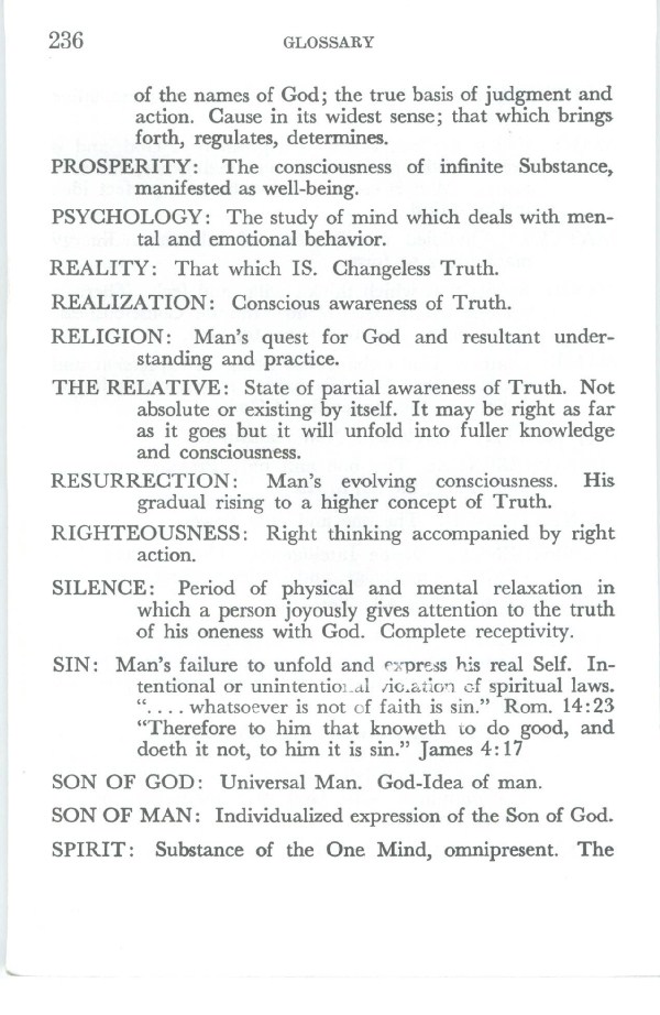 SIN: Man's failure to unfold and rxpress his real Self. Intentional or unintentioi.al rie.ation of spiritual laws. c`.... whatsoever is not of faith is sin." Rom. 14:23 "Therefore to him that knoweth to do good, and doeth it not, to him it is sin." James 4:17