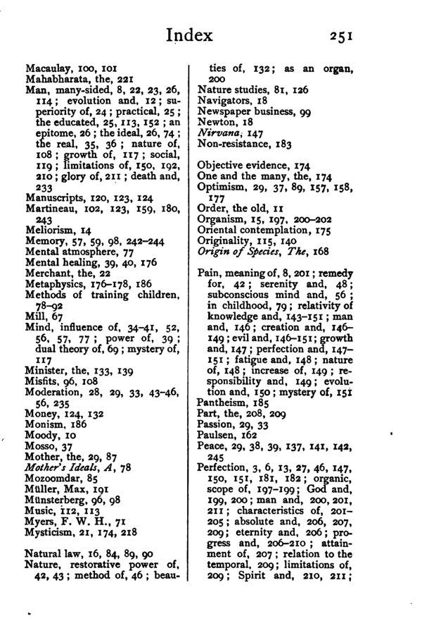 Preface - Introduction - The New Point of View - Educational Ideals - Equanimity - The Subconscious Mind - The Spiritual Ideal in Childhood - An Experiment in Education - The Expression of the Spirit - An Ideal Summer Conference - The Ministry of the Spirit - The Mystery of Pain and Evil - The Philosophical Ideal - The Criteria of Truth - Organic Perfection - Immortality - Index - p. 247
