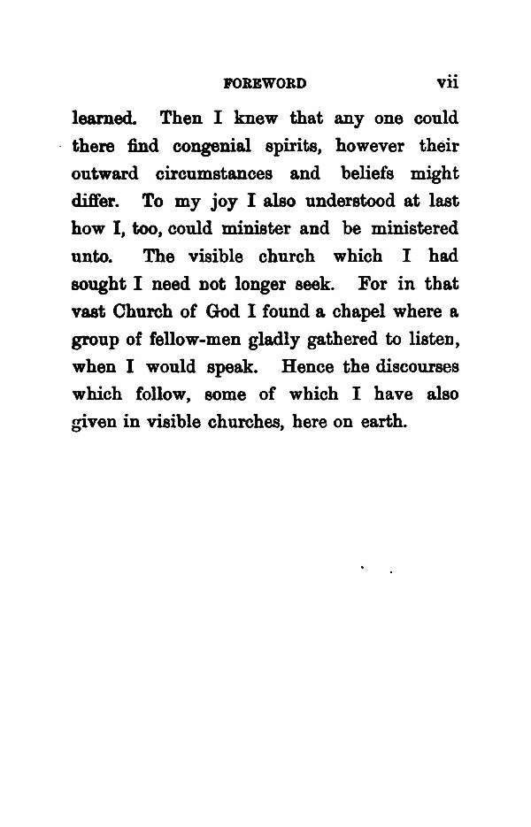 Contents - Foreword - Glad Tidings - The Greatest Truth - I and My Father Are One - Law of the Kingdom - Temporal and the Spiritual - Transfiguration - Meaning of Ideals - Spirituality - What Is Freedom? - Can We Change Our Dispositions? - The Inner Light - Faith - Value of Praye - Fatherhood of God - Law of Human Evolution - Wisdom - Harmony - Thoughts - Prejudice - What is the Higher Life? - God is Love - Power of Truth -