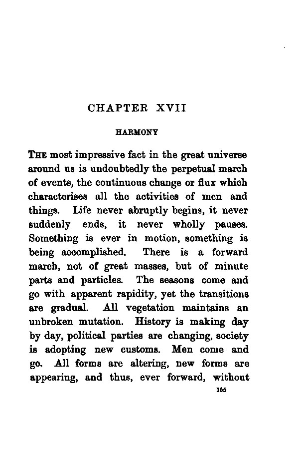 THE most impressive fact in the great universe around us is undoubtedly the perpetual march of events, the continuous change or flux which characterises all the activities of men and things. Life never abruptly begins, it never suddenly ends, it never wholly pauses. Something is ever in motion, something is being accomplished. There is a forward march, not of great masses, but of minute parts and particles. The seasons come and go with apparent rapidity, yet the transitions are gradual. All vegetation maintains an unbroken mutation. History is making day by day, political parties are changing, society is adopting new customs. Men come and go. All forms are altering, new forms are appearing, and thus, ever forward, without