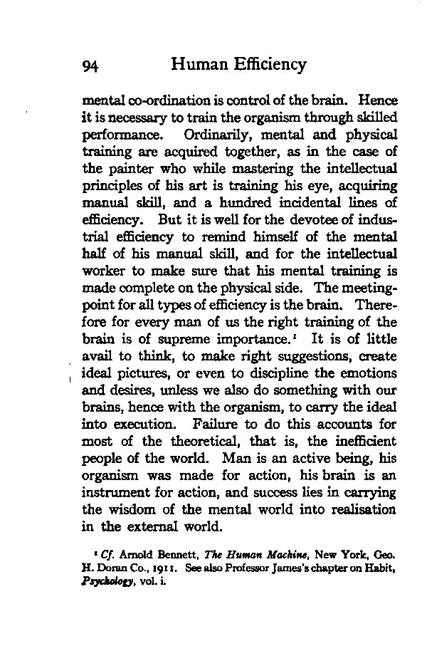 1 Cf. Arnold Bennett, The Human Machine, New York, Geo. H. Doran Co., 191 1. See also Professor James's chapter on Habit, Psychology, vol. i.