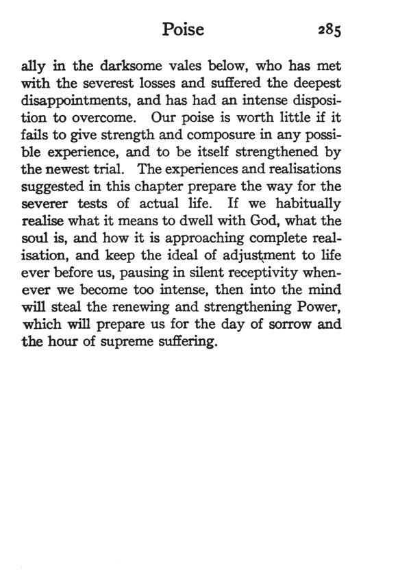 Preface to the New Edition - The Point of View - Immanent God - World of Manifestation - Nature of Existence - Mental Life - Meaning of Idealism - Nature of Mind - Meaning of Suffering - Duality of Self - Adjustment - Poise - Self-Help - Entering the Silence - The Outlook - Contents - Index