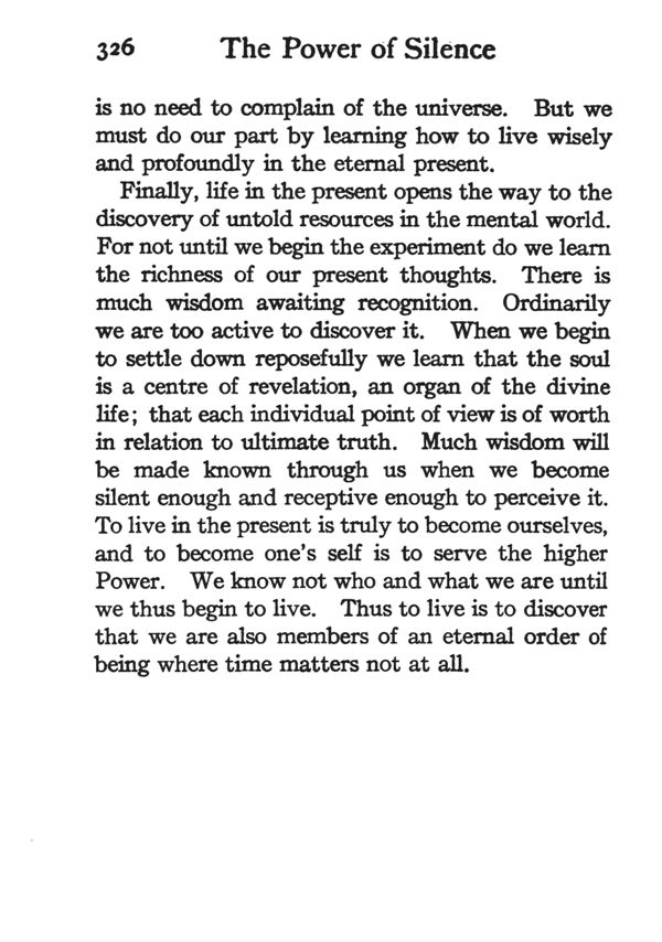 Preface to the New Edition - The Point of View - Immanent God - World of Manifestation - Nature of Existence - Mental Life - Meaning of Idealism - Nature of Mind - Meaning of Suffering - Duality of Self - Adjustment - Poise - Self-Help - Entering the Silence - The Outlook - Contents - Index