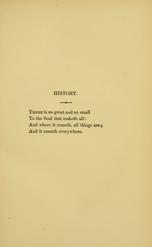 Contents - History - Self-Reliance - Compensation - Spritual Laws - Love - Friendship - Prudence - Heroism - The Over-Soul - Circles - Intellect - Art