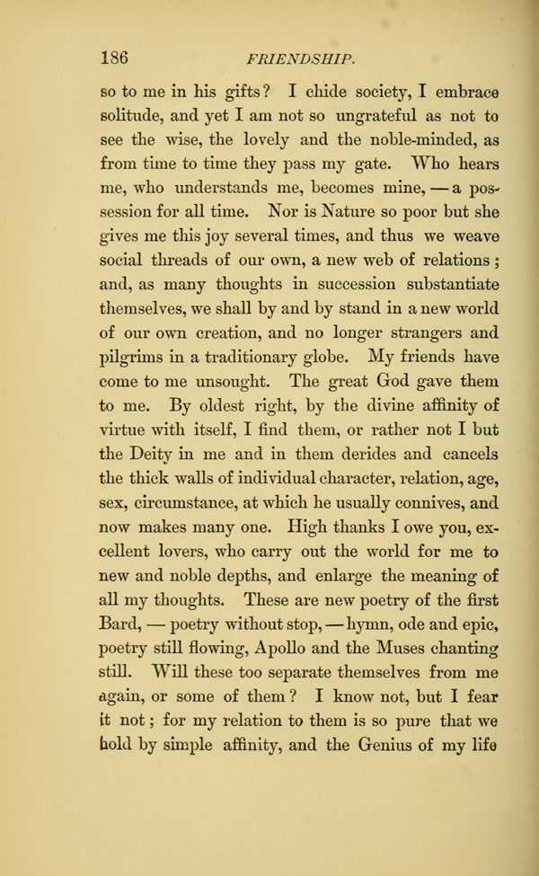 me, who understands me, becomes mine, -- a possession for all time. Nor is Nature so poor but she