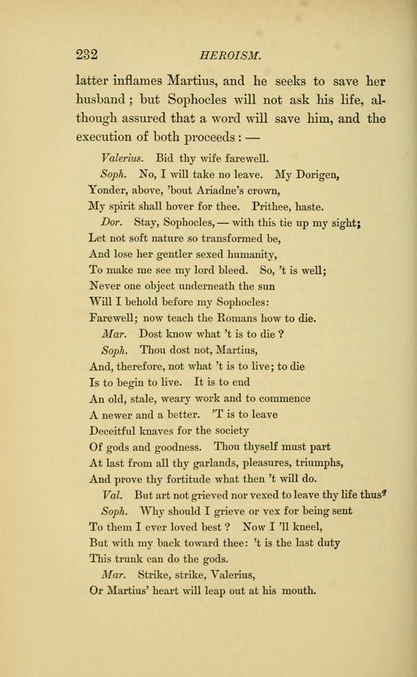 latter inflames Martius, and he seeks to save her husband; but Sophocles will not ask his life, although assured that a word will save him, and the execution of both proceeds: