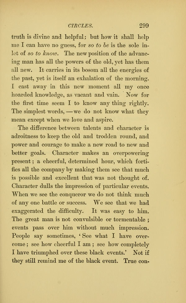 Character dulls the impression of particular events. When we see the conqueror we do not think much of any one battle or success. We see that we had exaggerated the difficulty. It was easy to him.