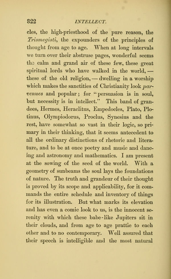 but necessity is in intellect." This band of grandees, Hermes, Heraclitus, Empedocles, Plato, Plotinus, Olympiodorus, Proclus, Synesius and the