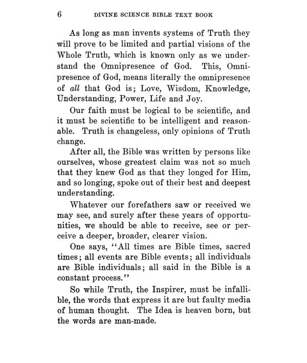 As long as man invents systems of Truth they will prove to be limited and partial visions of the Whole Truth, which is known only as we understand the Omnipresence of God. This, Omnipresence of God, means literally the omnipresence of all that God is; Love, Wisdom, Knowledge, Understanding, Power, Life and Joy.
