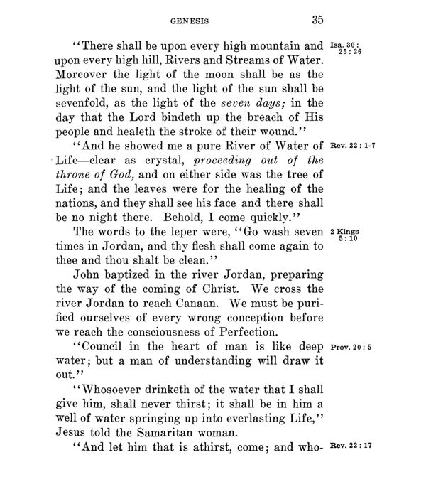 John baptized in the river Jordan, preparing the way of the coming of Christ. We cross the river Jordan to reach Canaan. We must be purified ourselves of every wrong conception before we reach the consciousness of Perfection.