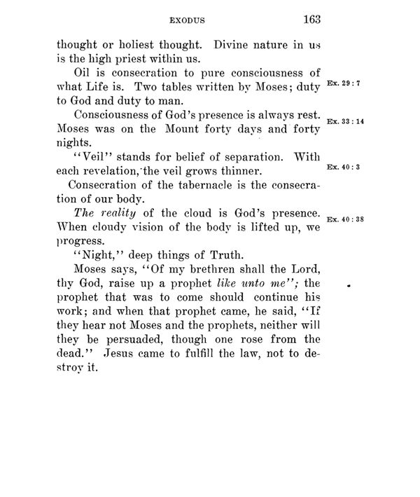 Moses says, " Of my brethren shall the Lord, thy God, raise up a prophet like unto me"; the prophet that was to come should continue his work and when that prophet came, he said, "If they hear not Moses and the prophets, neither will they be persuaded, though one rose from the dead." Jesus came to fulfill the law, not to destroy it.