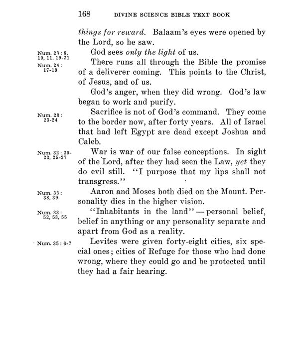 Num. 32: 20-23, 25-27 Num. 33:38, 39 Num. 33:52, 53, 55 Num. 35: 6-7 |