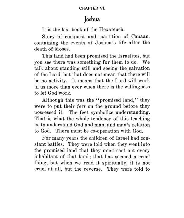 Although this was the "promised land," they were to put their feet on the ground before they possessed it. The feet symbolize understanding. That is what the whole tendency of this teaching is, to understand God and man, and man's relation to God. There must be co-operation with God.