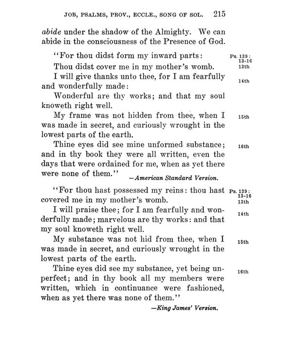 Thine eyes did see mine unformed, substance; and in thy book they were all written, even the days that were ordained for me, when as yet there were none of them."