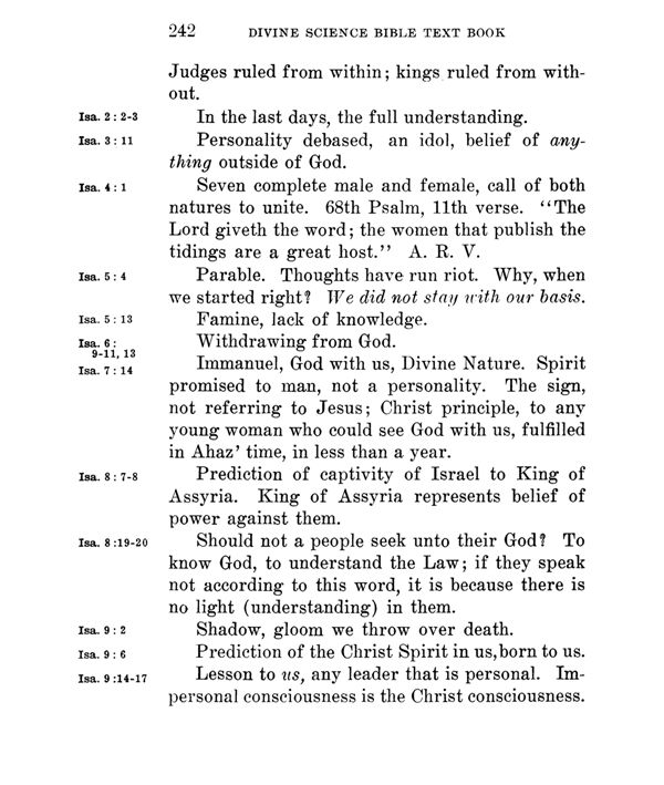 Isa. 2: 2-3 Isa. 3: 11 Isa. 4: 1 Isa. 5: 4 Isa. 5: 13 Isa. 6: 9-11, 13 Isa. 7: 14 Isa. 8: 7-8 Isa. 8:19-20 Isa. 9: 2 Isa. 9: 6 Isa. 9:14-17 |