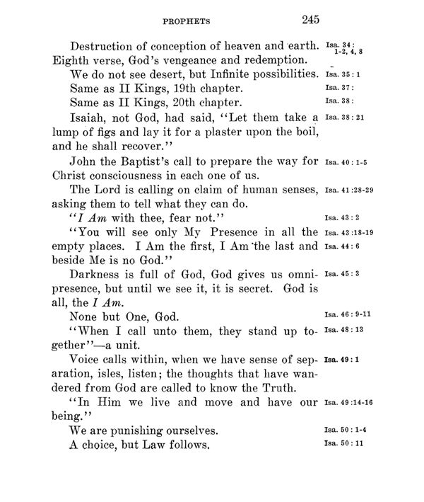 Isa. 34: Isa. 35: 1 Isa. 37: Isa. 38: Isa. 38: 21 Isa. 40: 1-5 Isa. 41: Isa. 43: 2 Isa. 43: Isa. 44: 6 Isa 45: 3 Isa. 46: Isa. 48:13 Isa. 4 9: 1 Isa. 49: Isa. 50: 1-4 Isa. 50: 11 |